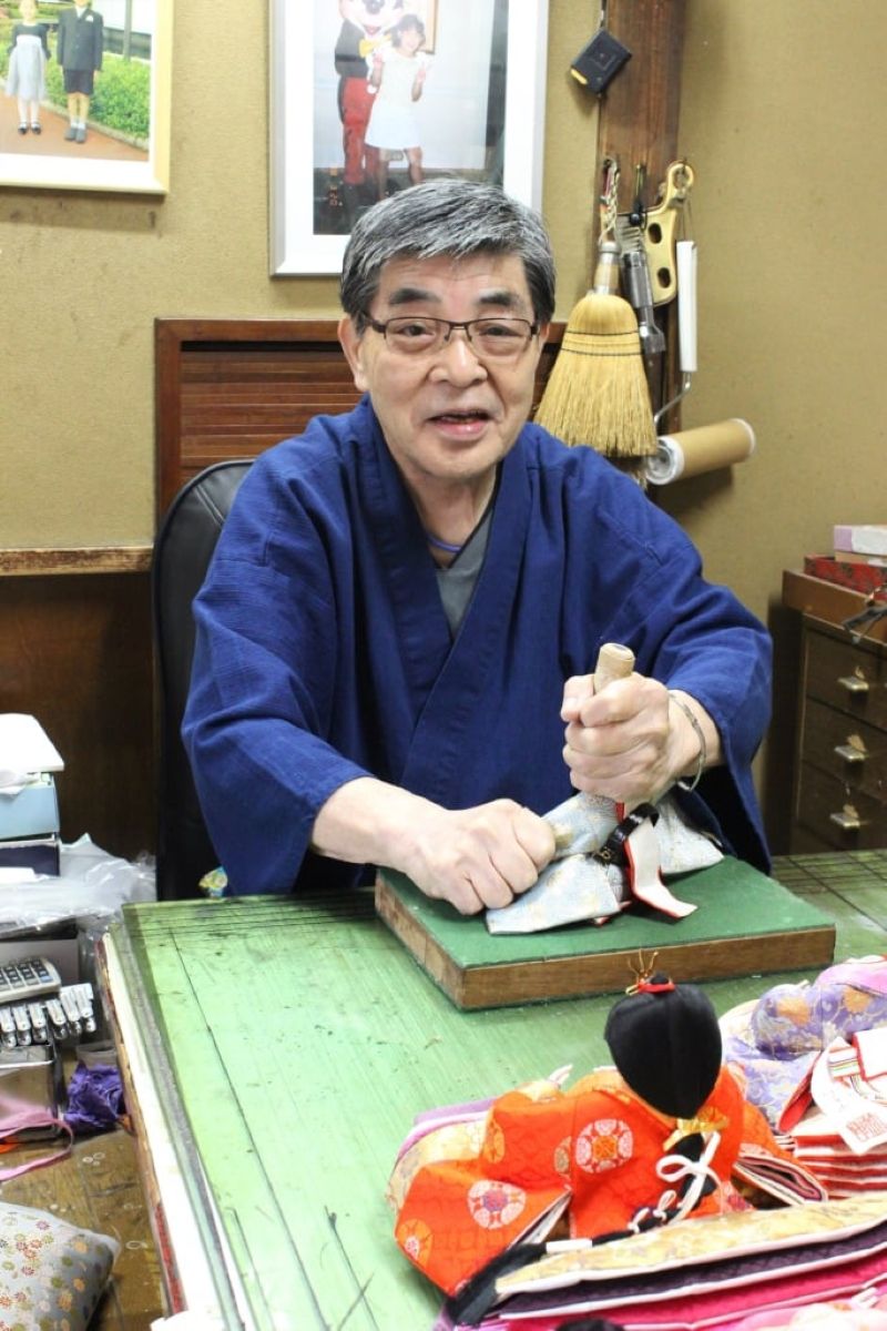 衣裳着人形とは、人形の意匠を考案し、人形頭師に桐塑(とうそ)製の頭の制作を依頼したうえで、それに合った生地を選び、裁断・縫製した衣裳を着せ付け、手足の姿勢を整えて仕上げる人形制作の技術である。制作には100を超える工程があり、それぞれの作業を丁寧に重ねながら、雛人形や五月人形などが作られる。